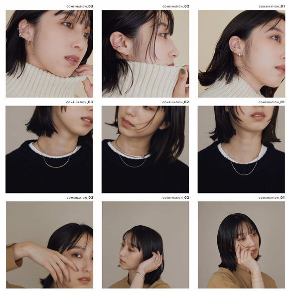 ピアスやイヤーカフなど耳周りのアイテムは、華奢ながらもデザイン性のあるアイテムが豊富。重ねづけすることで顔まわりを華やかな印象に仕上げてくれます。