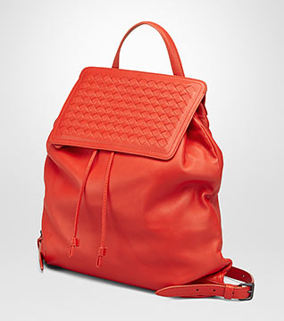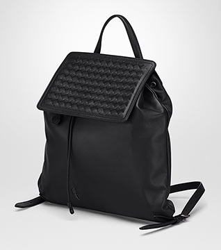 通勤やオフィスにマッチするコンパクトなレザーリュック。ソフトなナッパレザー使いや、ボッテガらしいレザー編み込みがされたフラップは贅沢なビジネスシーンを演出します。
