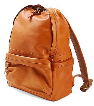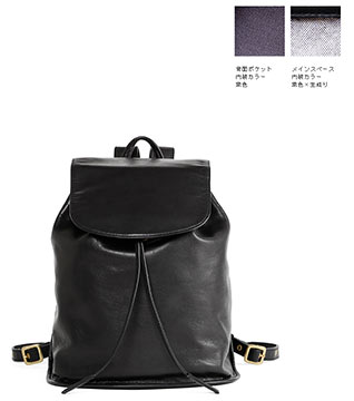 丸みのあるデザインに高級感のあるバケッタレザーを使った巾着タイプのリュック。容量も高いので収納力があり、背面にはジッパーポケットを採用するなど機能性もあるアイテムです。