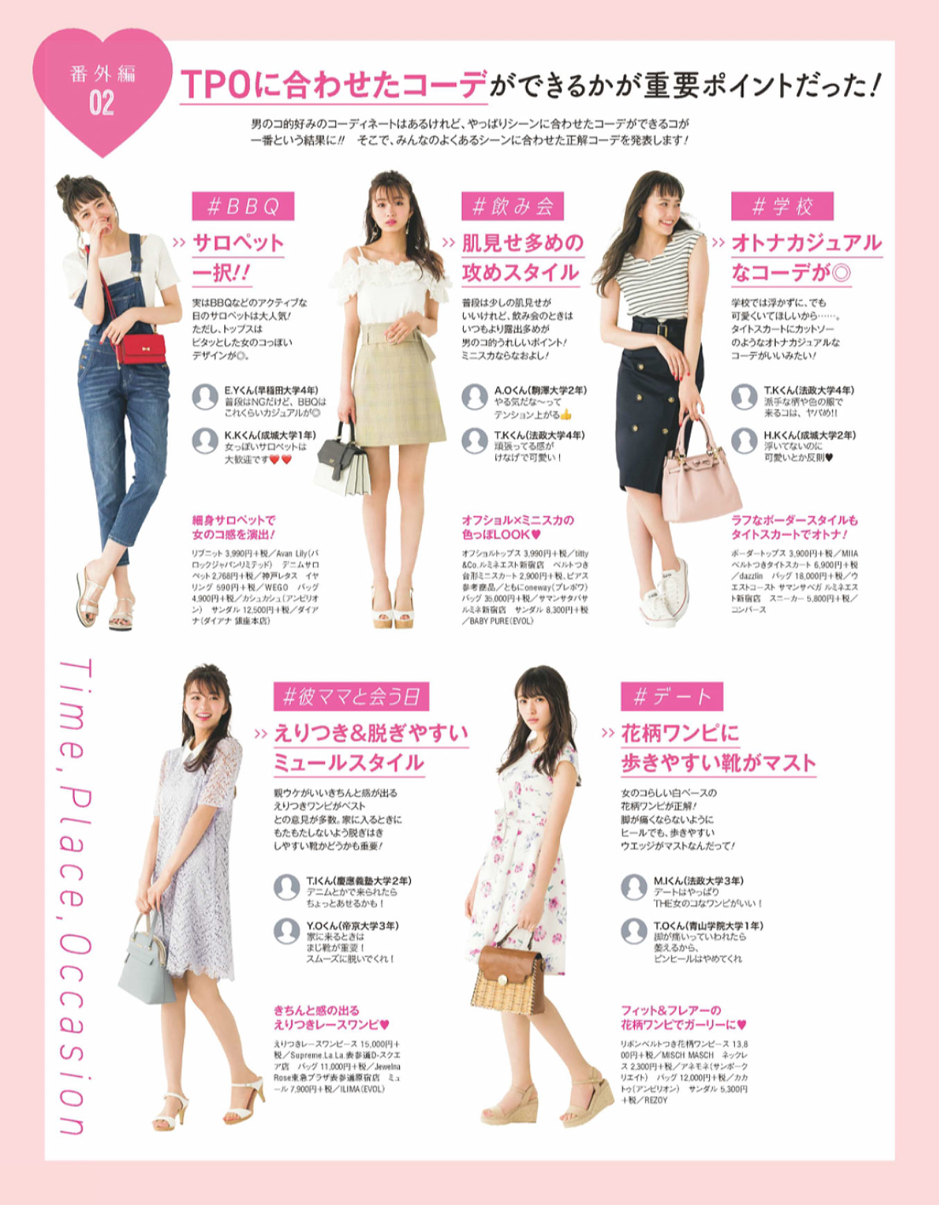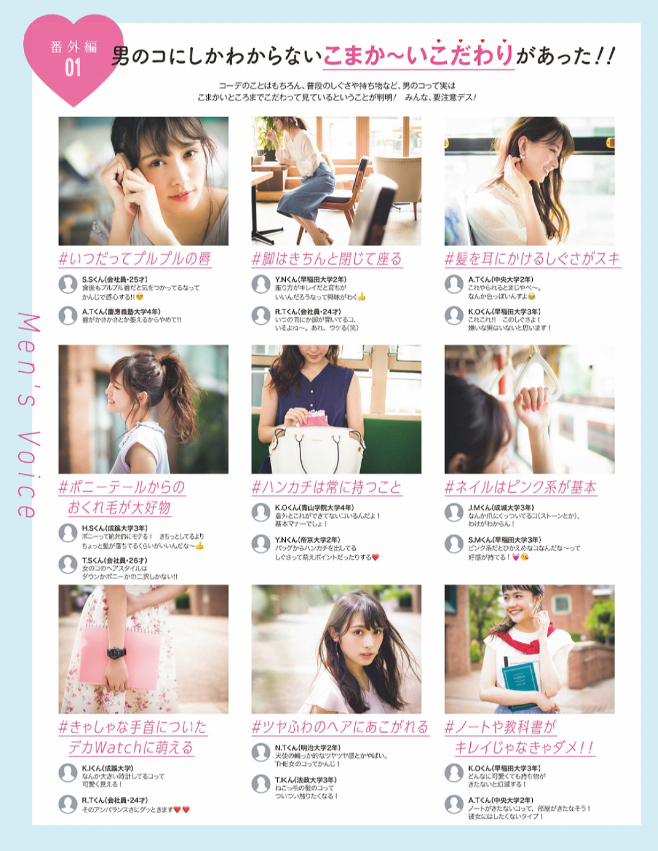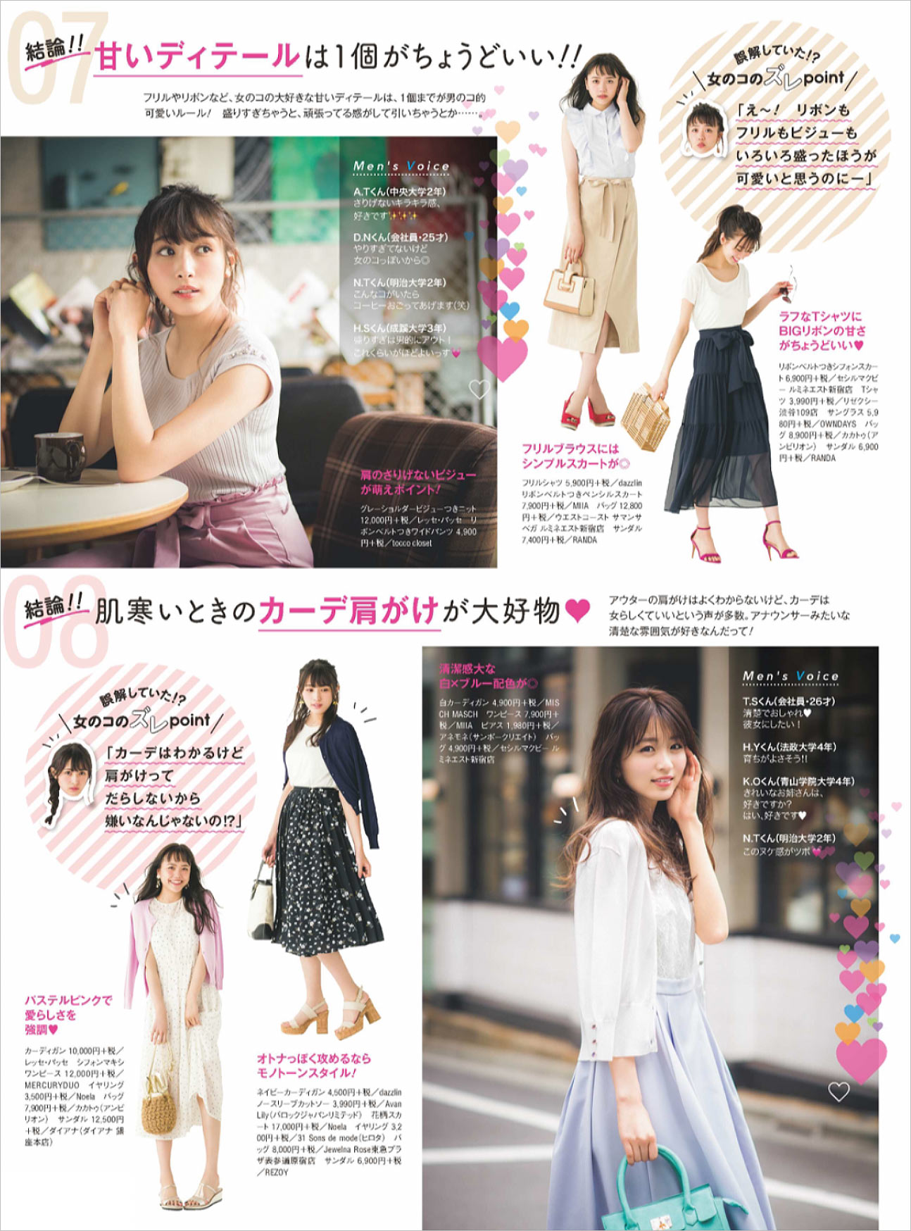 今回は、Ray12月号で紹介された、『男子大学生&社会人の100人に調査した一目ぼれ6スタイル』を参考にした、男性が本当に好きなデート服コーディネートを紹介しています。