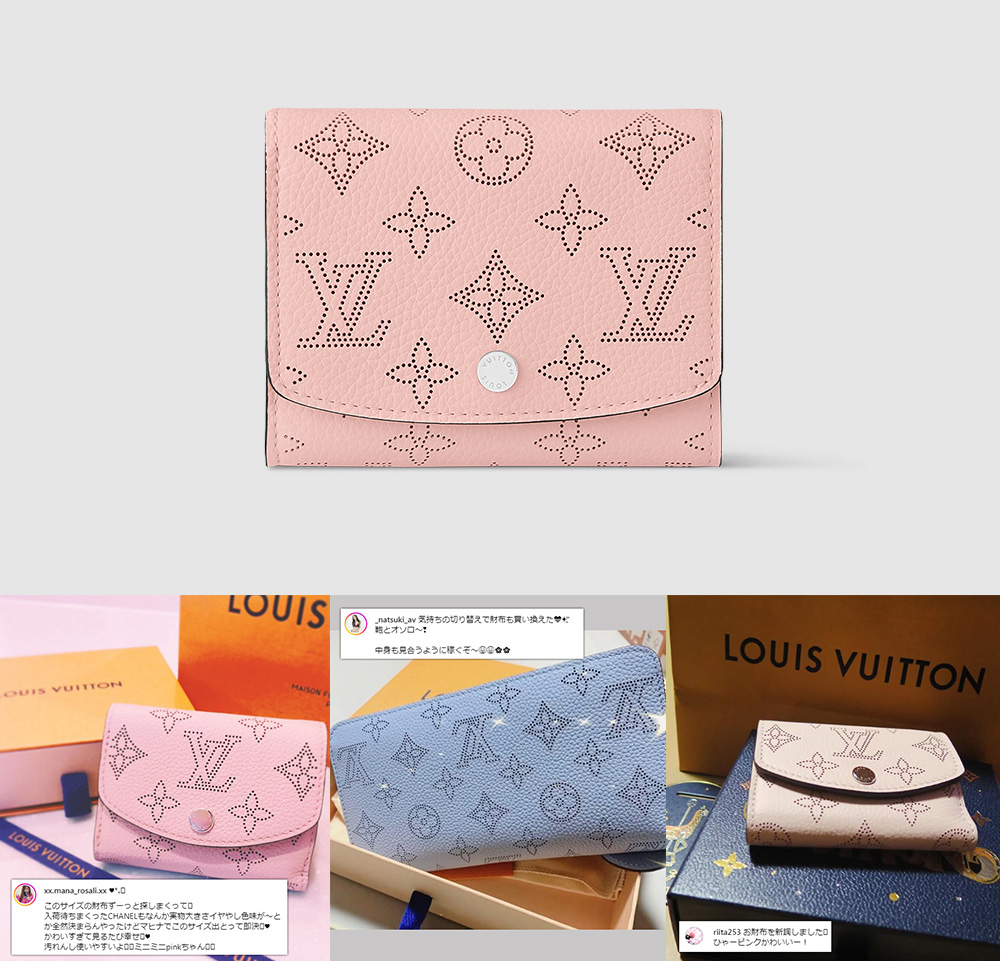 王道モノグラムをパンチング(穴あけ)加工で表現した、フェミニンさが魅力の「マヒナ」。可愛いルイヴィトンならコレ!というくらいの定番になっています。
