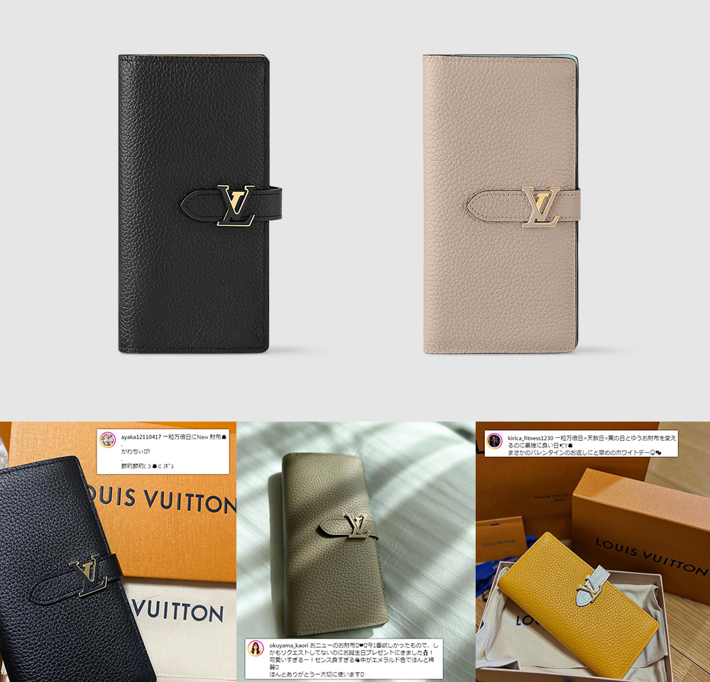 上質な革素材にメゾンを象徴するLVマークが添えられた、“大人っぽいルイヴィトン”として人気の「カプシーヌ」。バッグに続いてお財布も人気が高い傾向にありました。