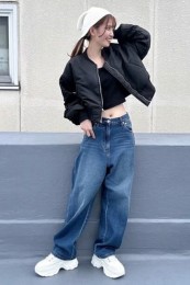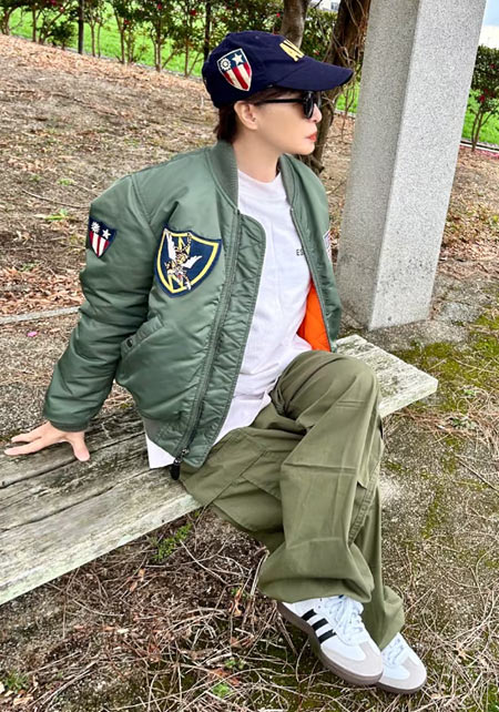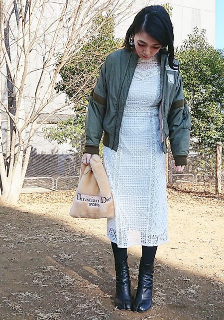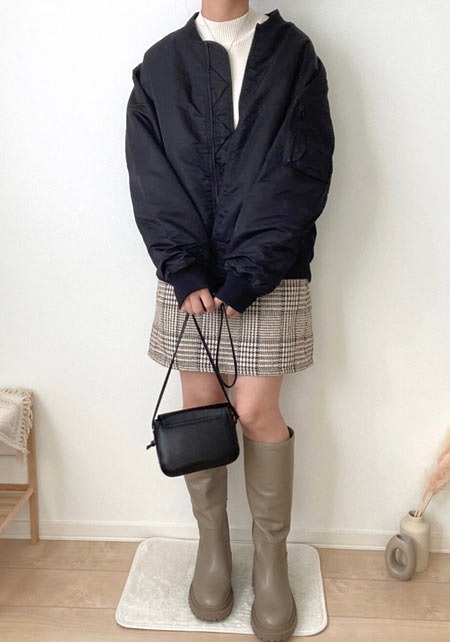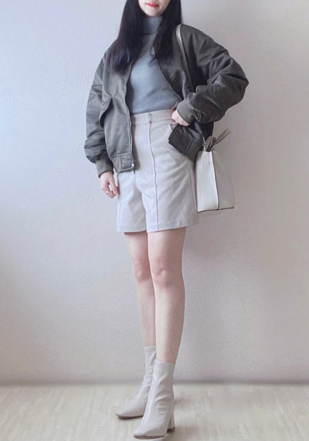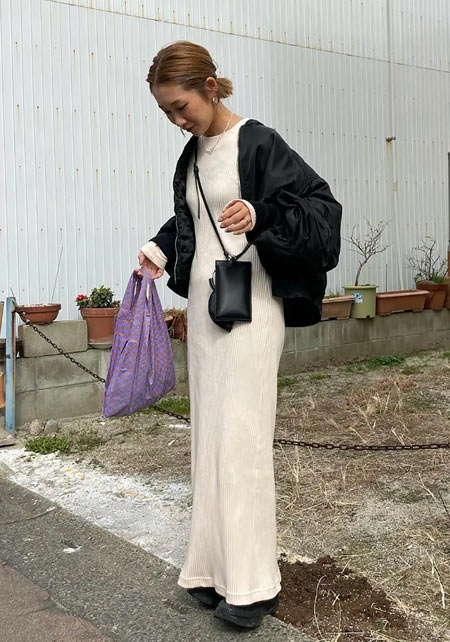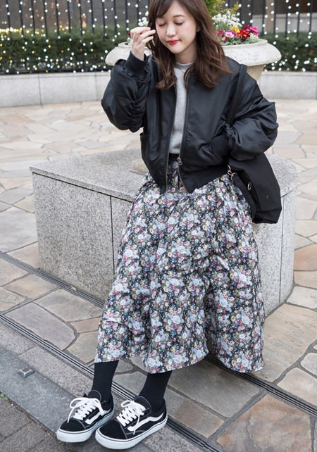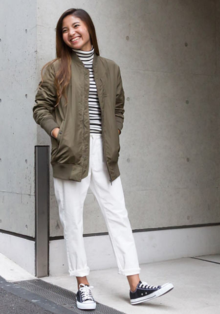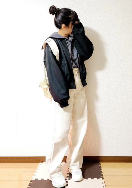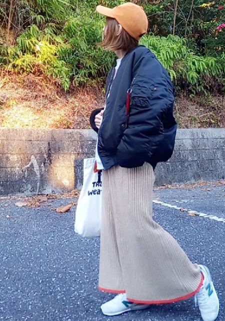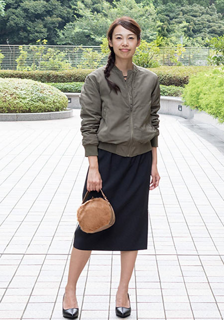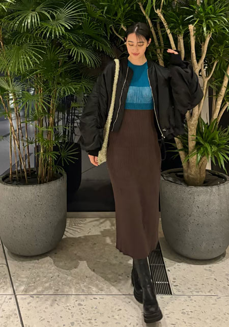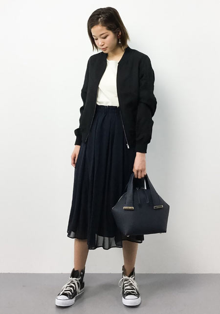 デニム合わせはもちろん、ワンピースやスカートにも合わせていける、今季トレンドのミリタリーアウターのMA-1。