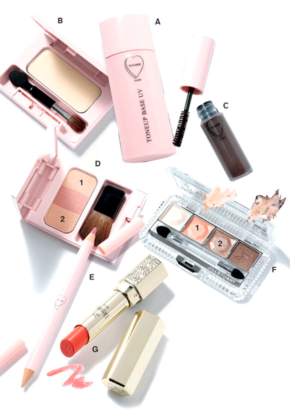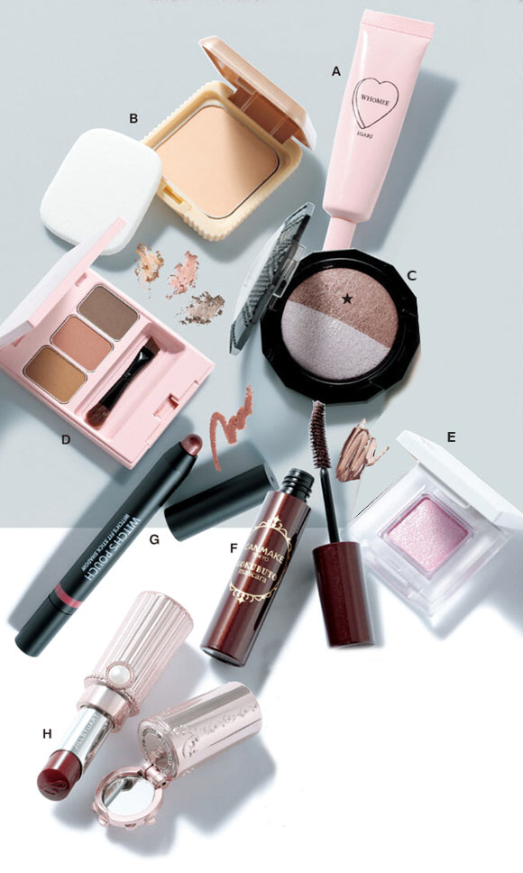 これまたキラッキラなGのシャドウベンを上まぶたのキワに引いて、Fの赤茶マスカラで仕上げる。深みが出て、女っぷりもアガる♪