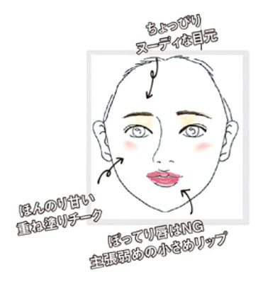 清潔感あってすっぴん風がいいよね! ツヤ肌とチークで叶うよ