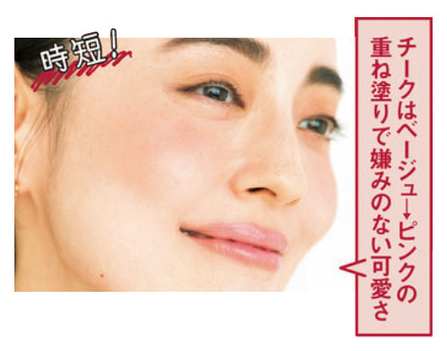 やっぱりチークってすごいの! 頬がホッと色づくだけで、たちまち可愛くなれちゃうから♪ 目元は特になにもしない。