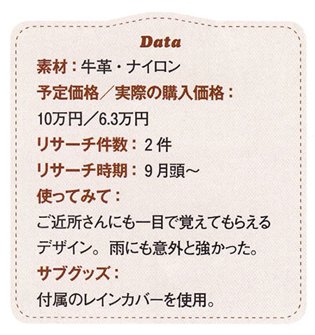 本人の希望も取り入れてあげたかったので、背面やパイピングは鮮やかなブルーのものを選んで。パパのナイスアシストに感謝です!