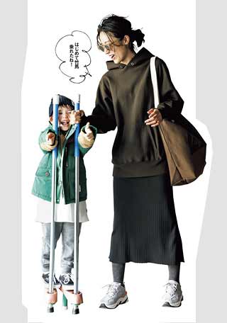 〈コーデ〉インソールのクッションがふかふかだから、公園帰りにストライダーを持たされても余裕顔♪