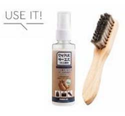 シューズブラシでホコリや紙やすりのカスを払ったら、スエード用栄養ミストで繊維に栄養を行き渡らせ、いきいきさせましょう。