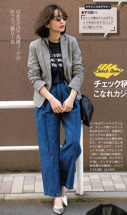 ネイビー×ブルーのワントーンに、べっ甲フレームのサングラスが洒脱なアクセント! インスタフォロワー32.2万人の憧れママ・金子麻貴さんみたいなデニムスタイルが完成します。