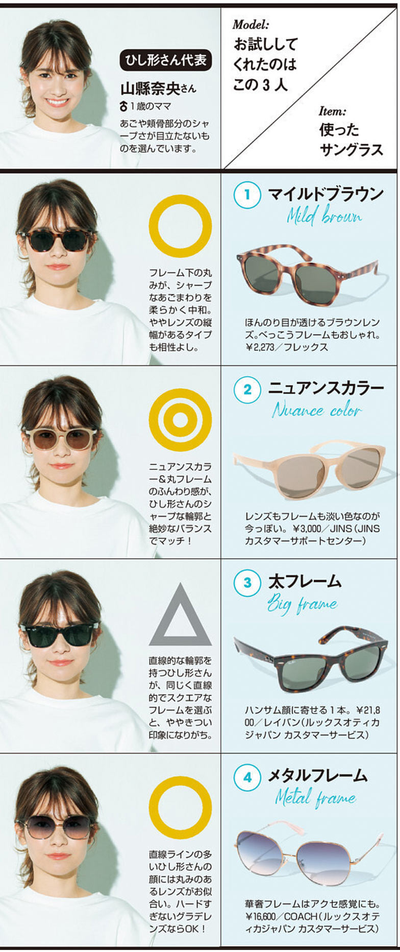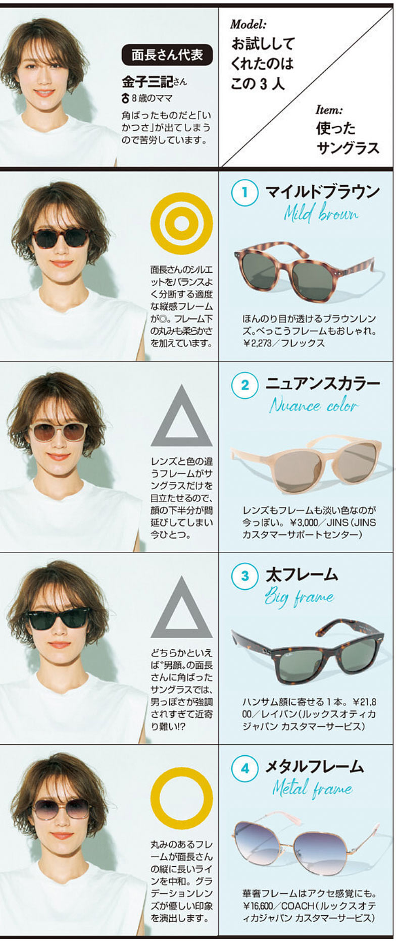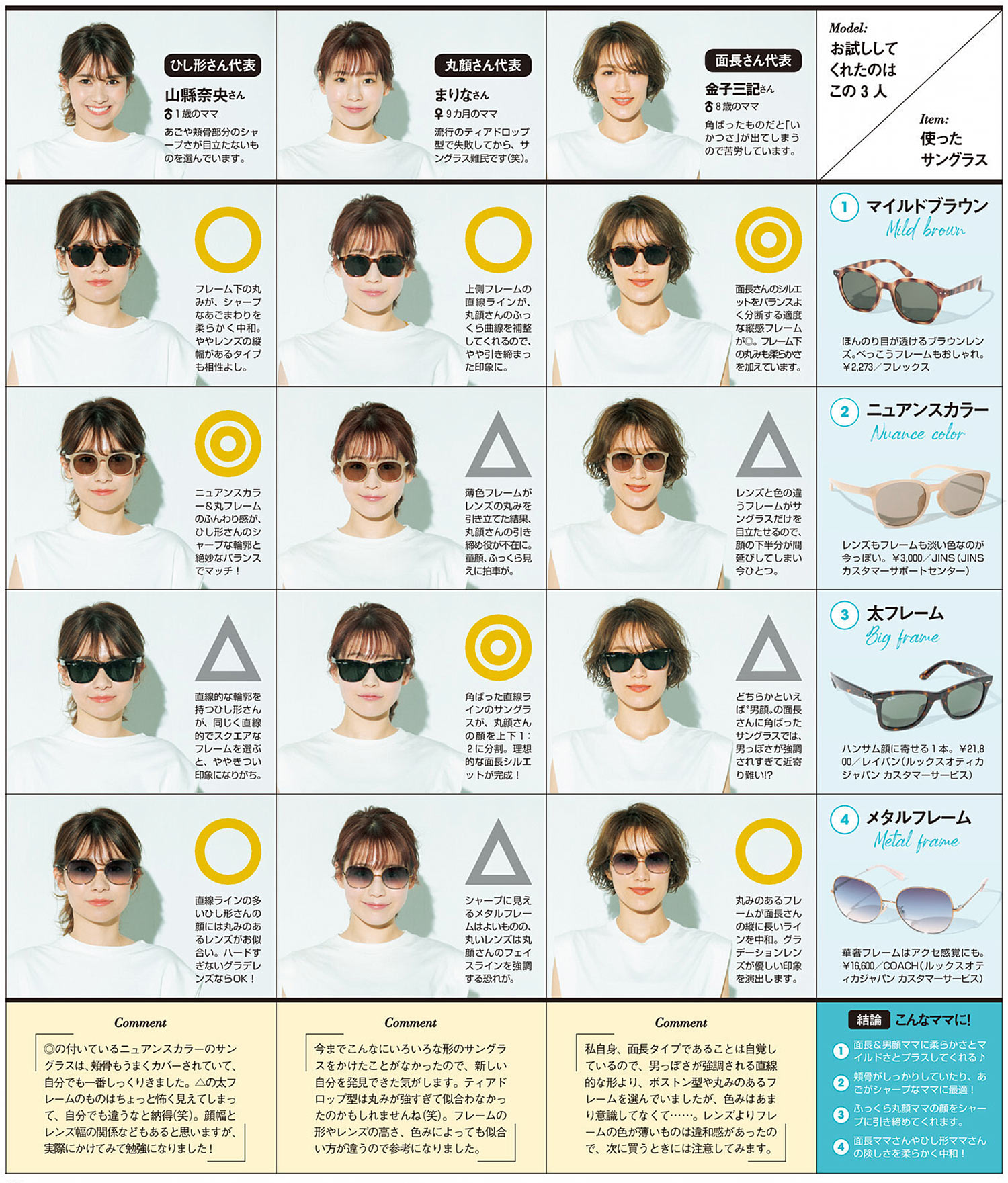 サングラスをかけるときにもうひとつ気になる顔型との相性を、読者ママが全部かけて検証しました!