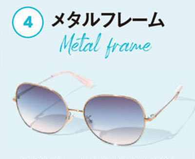 セルフレーム(プラスチック)が主。天地でフレームの太さを変えた“抑揚のある”形なので、女らしくかけることができます。スモーキーカラーといった顔馴染みのいい色味も多いです。