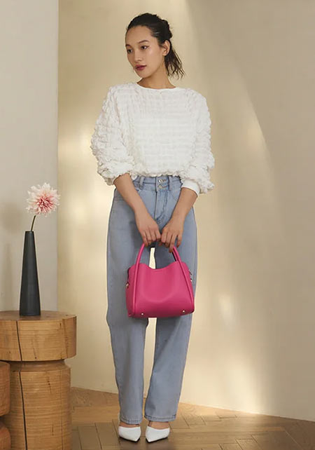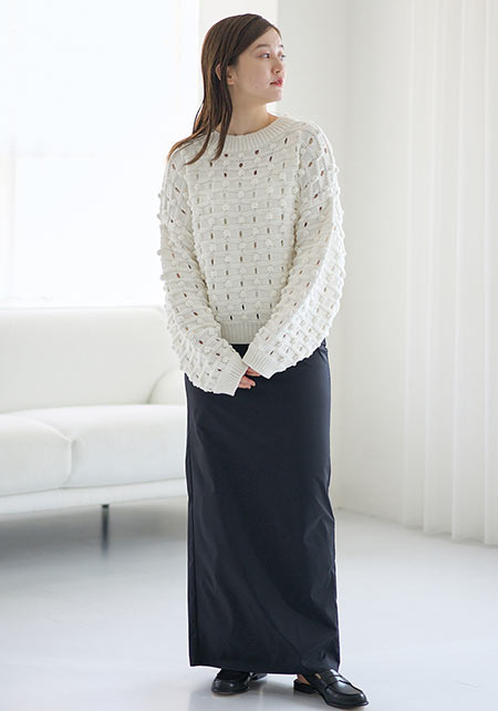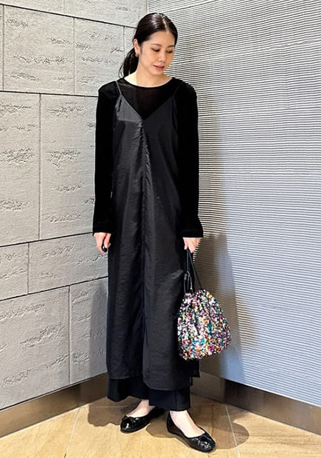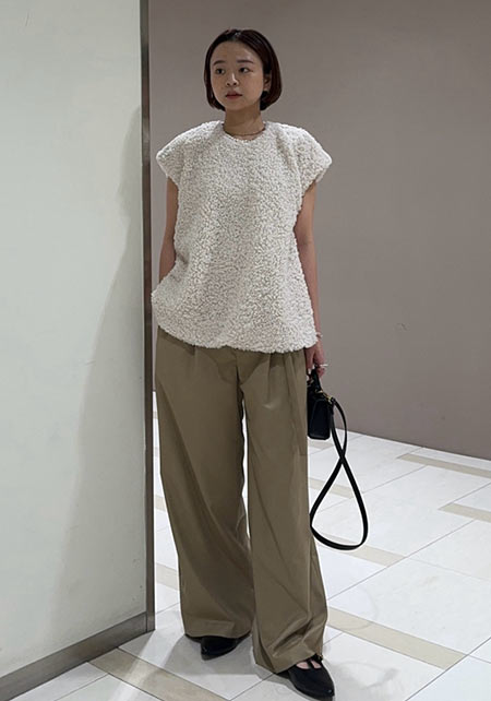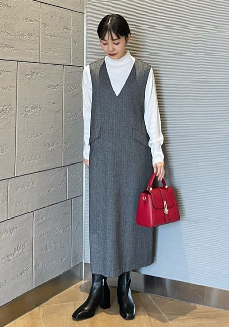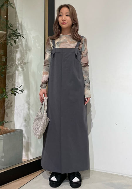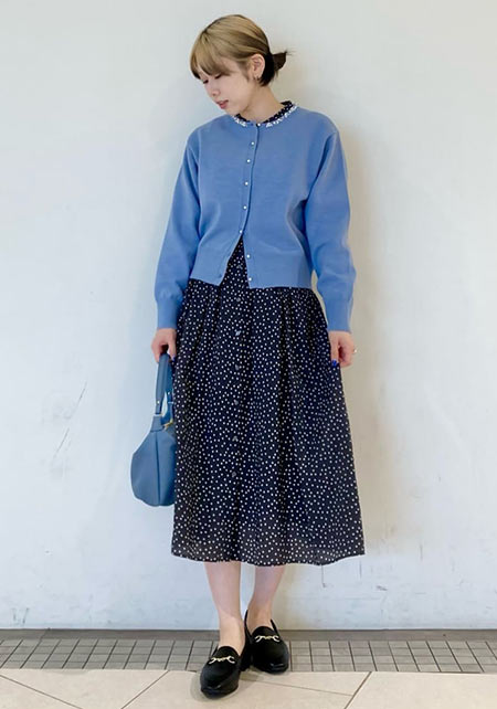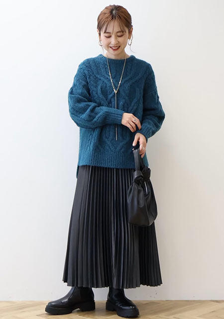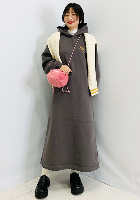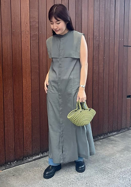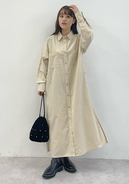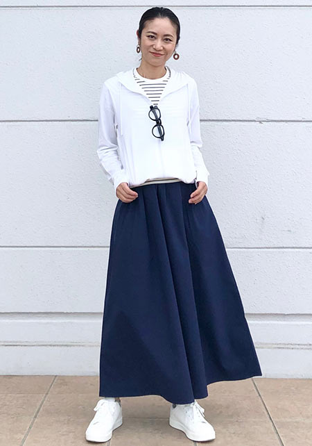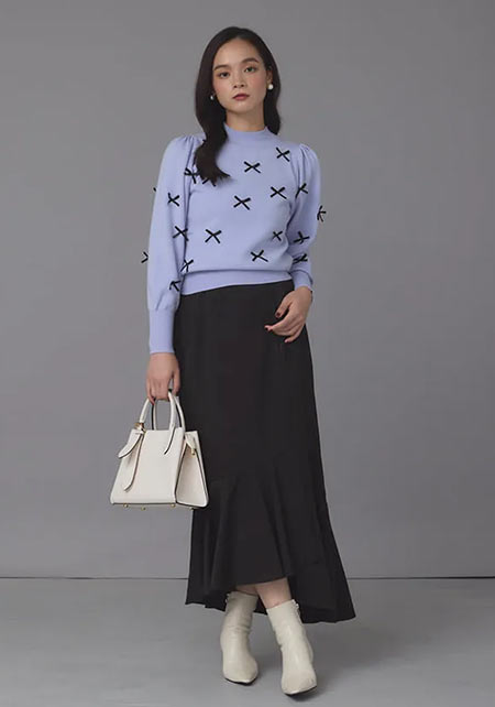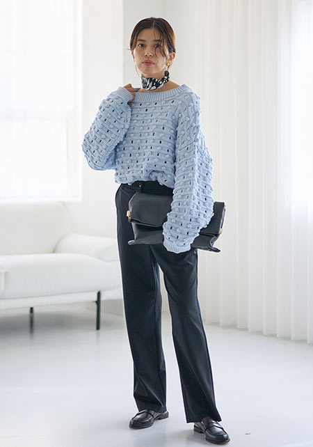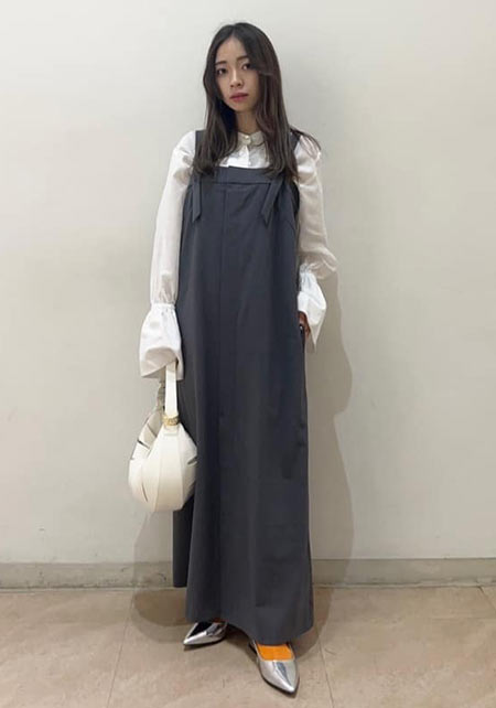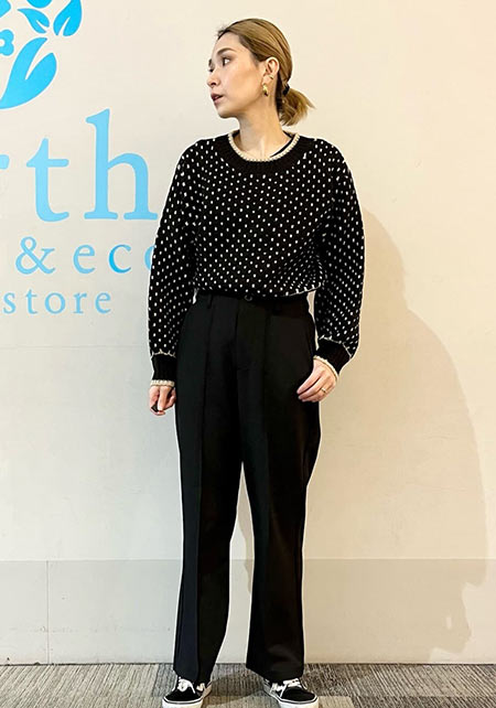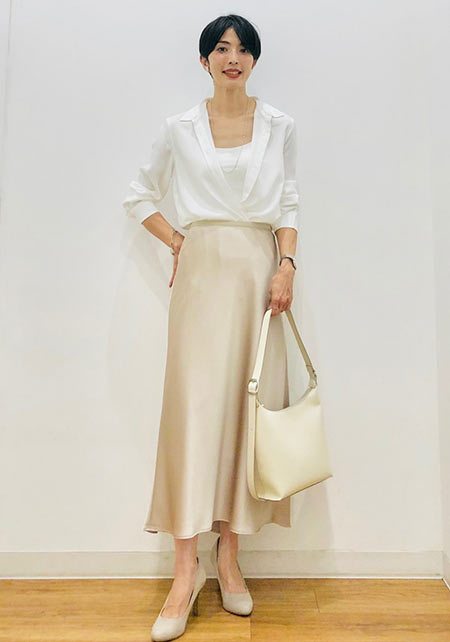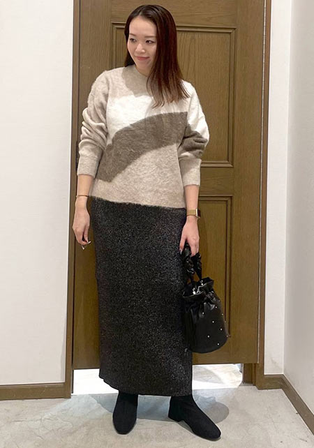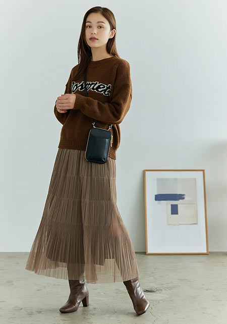 シンプルだけど、素材とかデザインが“普通すぎない”のがアメホリの良いところ。手持ちのユニクロのスカートにも即なじんで、トレンドコーデに。バッグはLattice、靴はRANDAのもの。