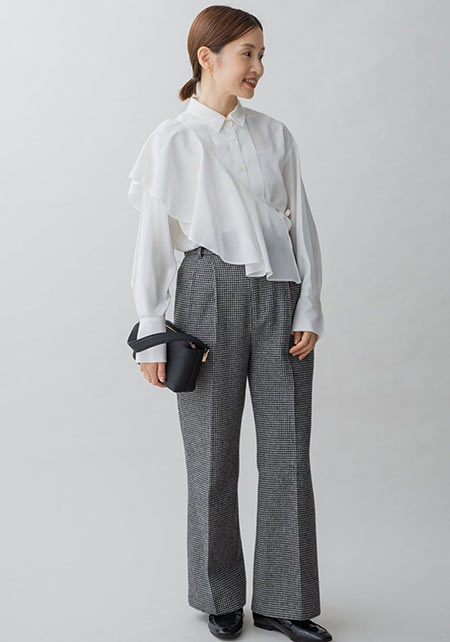ひとクセデザインでおしゃれに差がつく! ZARAのチェック柄は上品だから、保護者会にもOK。野暮ったくなく素敵ママになれます。