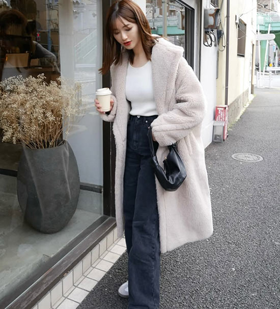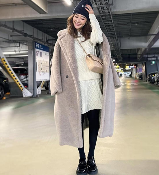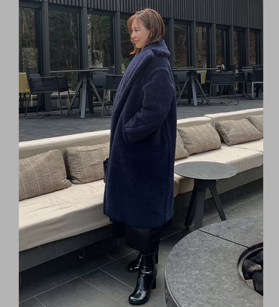 テディベアのような短い毛並みと、体を優しく包み込むボリューム感のあるコクーンシルエットが特徴で、見た目の豊かさに反して驚くほど軽量(約1.3kg)で保温性も高いです。