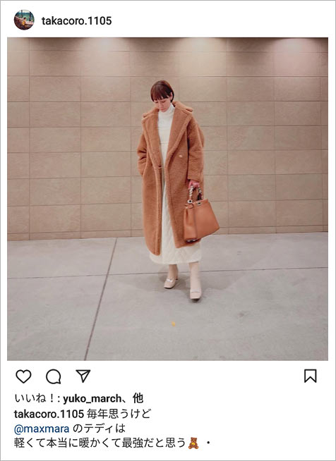テディベアは、マックスマーラだと一目で分かるデザインで、軽くて暖く機能性も抜群と、非の打ち所のない名品なので自然な結果かもしれません。