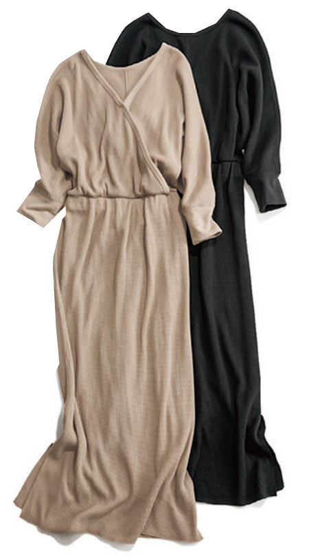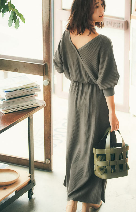 ブランドの立ち上げからロングヒットを続けるワッフル地のアイテム。今季は背中開き&サイドスリットのワンピースで登場です。開発からこだわったカジュアルな素材を女っぽいアイテムに落とし込むのはミラオーウェンの真骨頂。ブーツでより女っぽく、スニーカーでカジュアルにと印象も変化します。