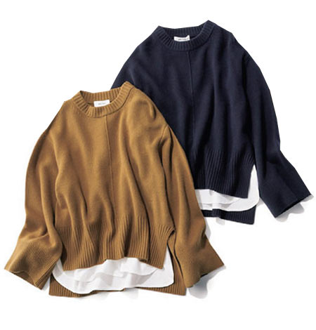 重ね着風ニットは毎シーズン大人気! インナーシャツを取り外しシンプルにも楽しめる。