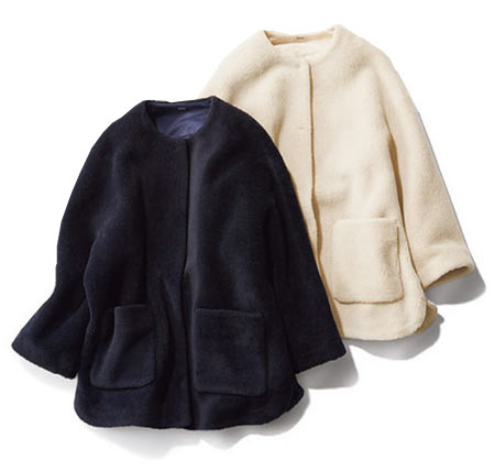 毎年完売するミラオーウェンの得意アイテムな“エコファー アウター”。トレンドのショート丈は軽快に着られるのも魅力。あえてシャツ風にしたサイドのカッティングや後ろに抜け感が出るようなパターンで着るようなこなれた雰囲気になれる優秀な一枚です。