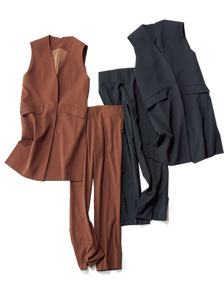 色々隠してくれる♪ ジレはパンツとセットで今っぽさプラス!