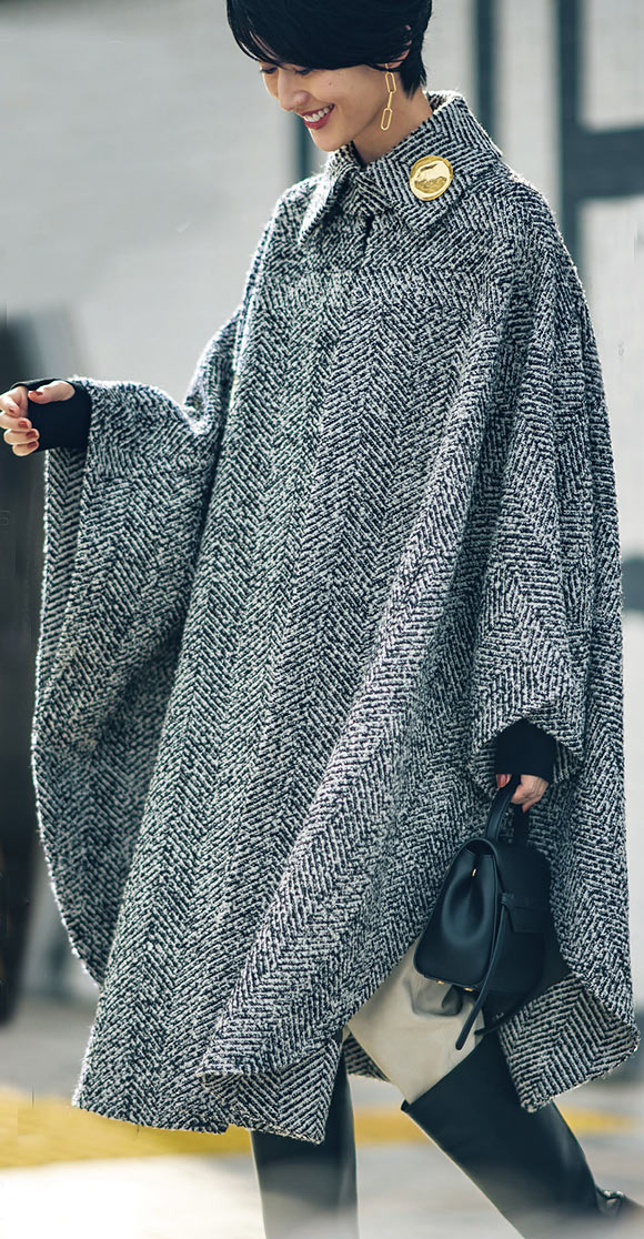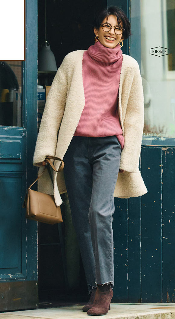 ニットアウターなのにコートのようにサマになる! ご近所シーンも新鮮。