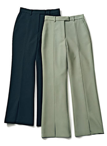 最近注目されているのは、ストレート。どんな靴でも合わせやすく、脚の形がキレイ見えするバックスリット入り。この後ろ姿のおかげで、ジャケットとのコーデも老けて見えず軽やかに着こなせます。