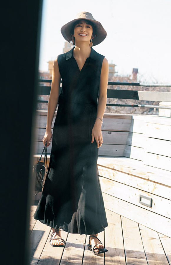 初夏の黒って新鮮。青空の下のお散歩は、涼しくてモード見えの服で!