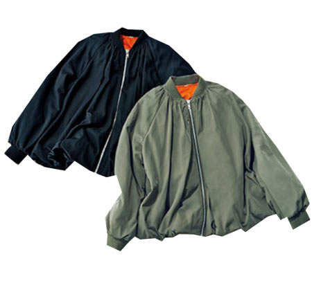 首元からギャザーがたっぷり入った、女性らしいデザインのMA-1!