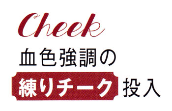 ピンクチークはいっきに顔に表情が生まれる重要アイテム。目の下いっぱいに入れるおてもやん顔にならないように、量とつけ方に注意。