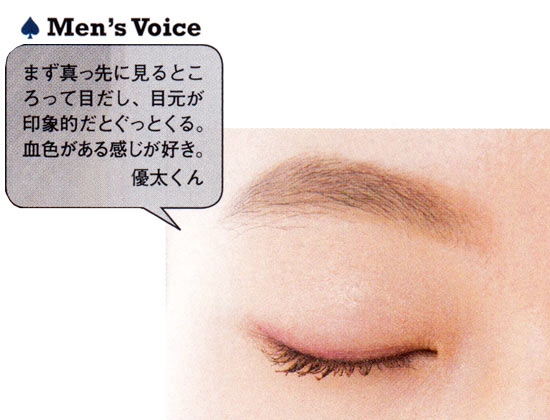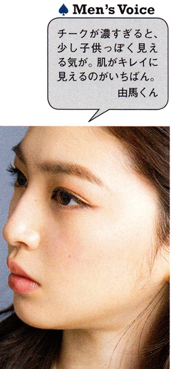 男子がケバいメイクを嫌うのはもはや常識。だからといって、ナチュラルすぎてほぼすっぴんなのはただの手抜きとしか思われないみたい。気づかれないくらいのほんのり「赤み」を効かせたメイクで、なんだか色っぽいと思わせる顔を演出して。