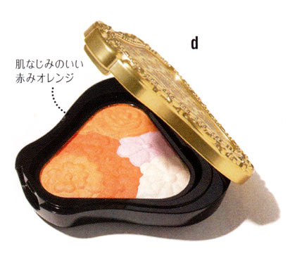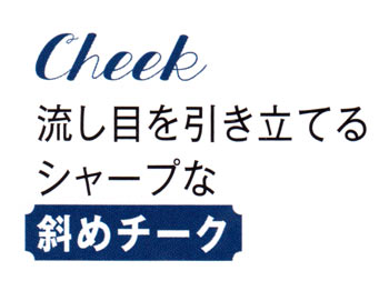 目尻のアイラインに合わせて、チークも斜めに入れてオトナ顔に。ピンクよりヘルシーで、ベージュよりフレッシュなオレンジが正解!