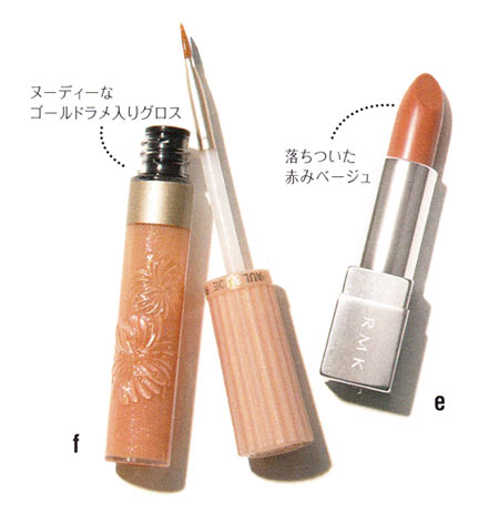 f.ラメ入りピンクベージュで輝きとツヤをプラス。