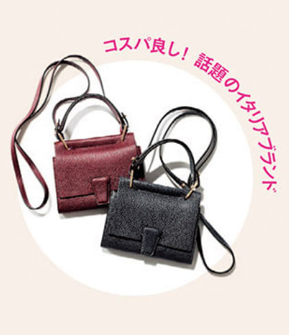 ラインナップ豊富な伊ブランド。カード入れが多くウォレットバッグとしても使える2WAYバッグも使いやすいと評判。バッグ[H16×W19×D2cm]各\26,000(ジャンニキアリーニ)