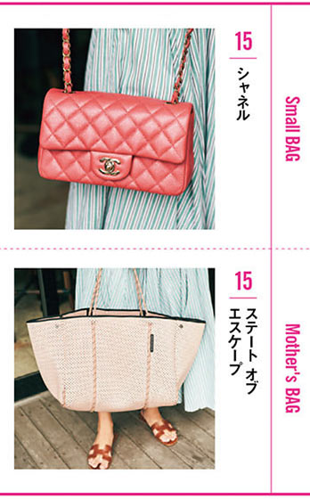 次なるマザーズバッグの流行を探すべく、リサーチをしてみたところ……。今どきは、小バッグとの2個持ちスタイルが主流という結論に。ブランドonブランドやHIGH&LOWなど、それぞれが好き好きに組み合わせを楽しんでいるのが、今のスタンダード!