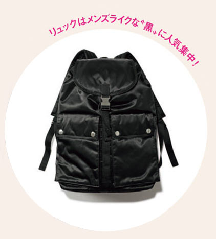 b.シンプルな黒にシャレ感をプラス。バッグ[H19×W16×D16cm]\49,000(ビルディングブロック)