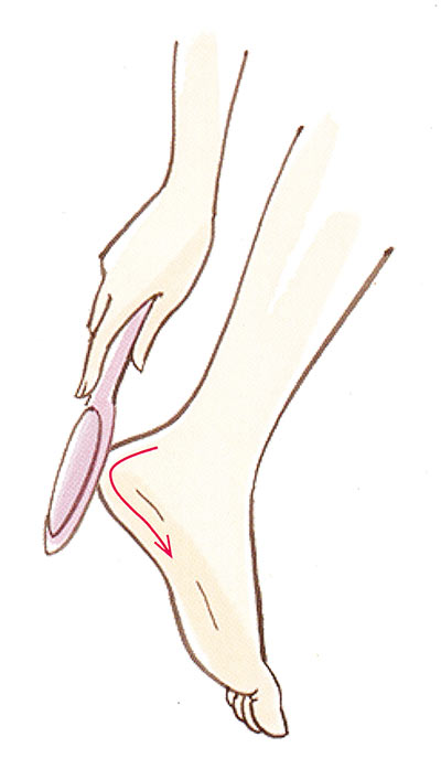 手の指紋同様、足にも足紋がある。足紋の向きに沿って一定方向に削るのがポイント。