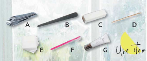 Bのエメリーボードをツメに対して90度にあて、一定方向に動かして削る。