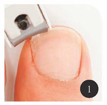 爪は指の長さに合わせてまっすぐに、“スクエアオフ”と呼ばれる切り方で切ります。深爪すると巻き爪になりやすいので気をつけて。爪の角、脇の部分は、やすりで1回程度軽く削るときれいになります。