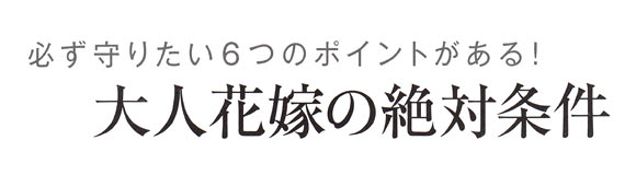 さりげない毛先のニュアンスや柔らかなトップのボリューム…、リュクスな雰囲気とオシャレ間を兼ね備ええたヘアアレンジは、大人のウェディングスタイルを作るのに欠かせない要素。大人花嫁のためのヘアルールが、もっと美しい花嫁姿を約束します。