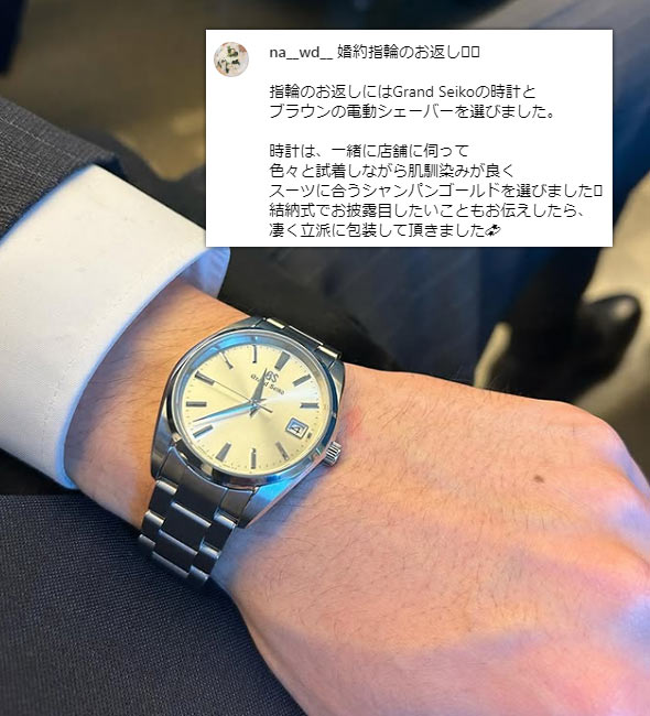 また、年齢を問わず使えるブランドですが、「高級時計の入門」的な一面があり、20代~30代で手に入れる方が多め。そのため丁度「結婚される年代と合う」、という点も人気の理由になっています。