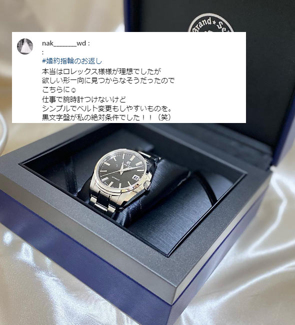 これは、一生もので使える腕時計ブランドであること、そしてお返しの予算で買えること、この2つの条件が揃っていることがポイントになっています。