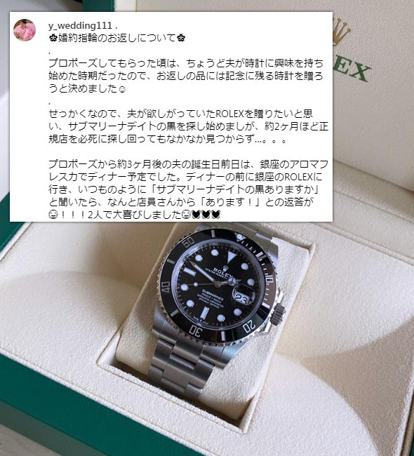 今回は、インスタグラムの投稿を元にした「婚約指輪のお返しで人気の腕時計ブランドランキング」と、人気の腕時計も発表しています!