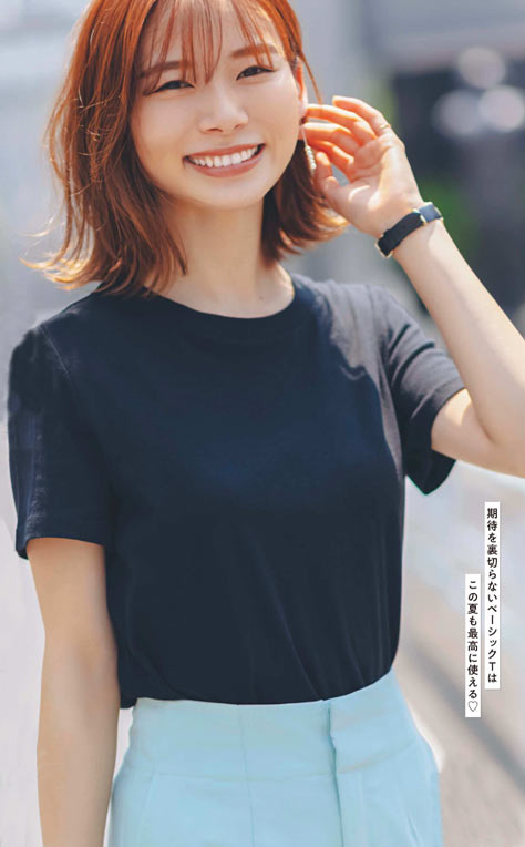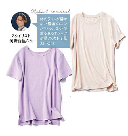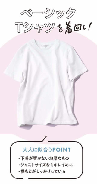 とにかく使えるプレーンなTシャツは透けを気にせず着られる地厚なタイプを選べばきちんと感UP!