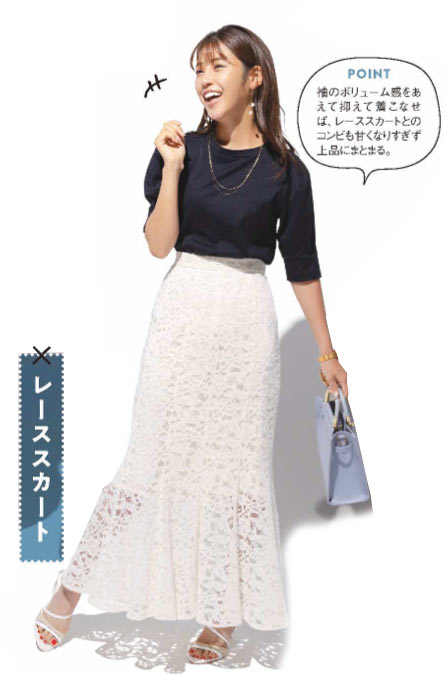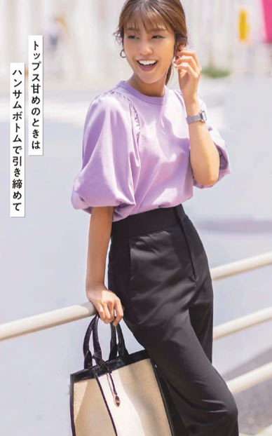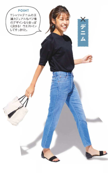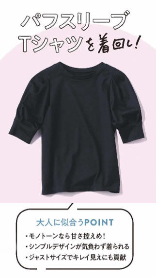 ブラウスみたいなパフスリーブTはオフィスからデートまで、シーンを選ばず使える優秀さ。可愛らしい雰囲気に。