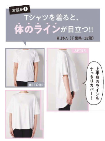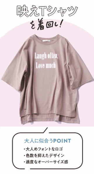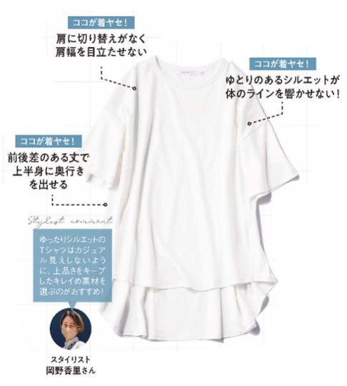 体形をカバーするほどよくゆとりのあるシルエットTシャツを!