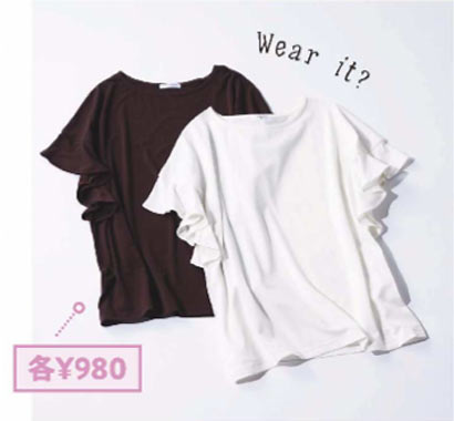 フェミニンな雰囲気を演出するフリル袖。クリーンなホワイトとシックなブラウン、カラバリで揃えたい!