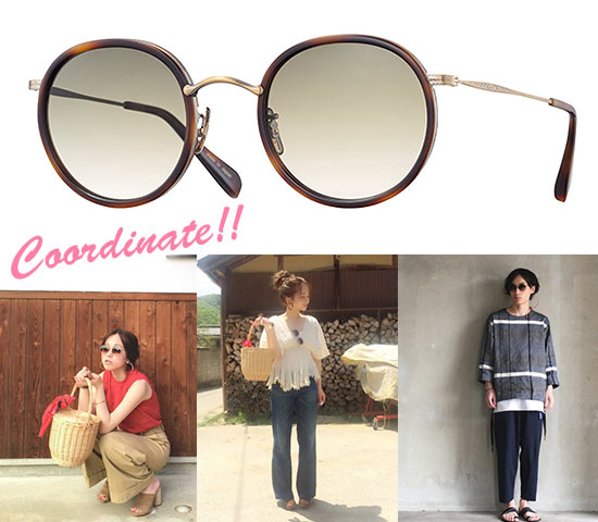 もともと60年代に女性に大人気だったラウンドサングラスを、アセテートとチタンのコンビで仕上げたもの。ガーリーにもマニッシュにも意外とどんなコーデとも相性がよく、「ブラウスやTシャツの胸元のアクセ」としても使えます。