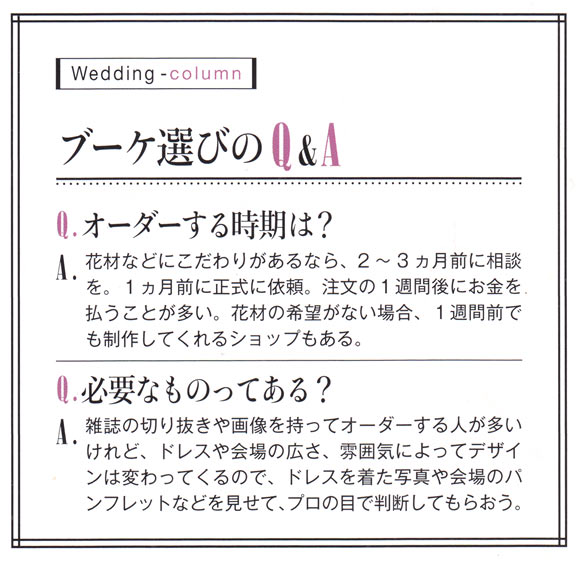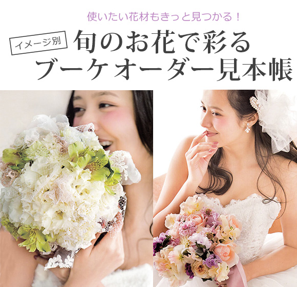 ラブリーなビタミンカラー大人のスイートテイストなど花色や花種はもちろんブーケに添えるリボンのセレクトもポイント。ハッピー気分をブーケに託して。