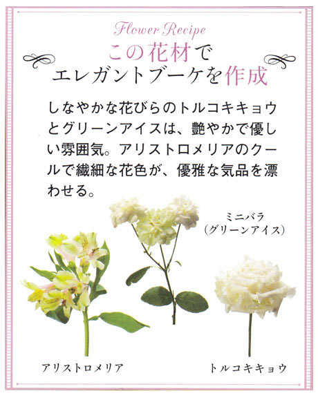 ■花材:トルコキキョウ、ミニバラ(グリーンアイス)、アリストロメリア「参考価格:40,000円]