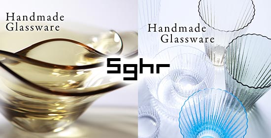 縁取りにゴールドをあしらったモダンエレガントなタイプ、ガラスの透明感をいかした爽やかなタイプの2種類あります。